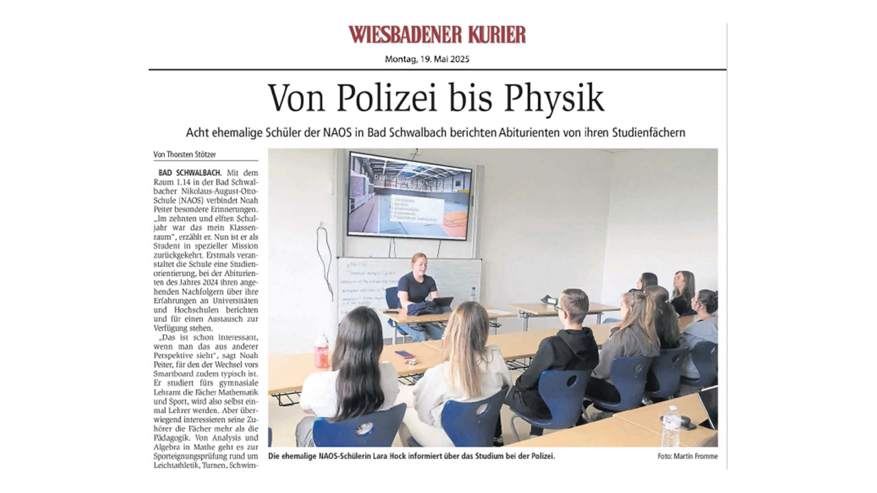 Von Polizei bis Physik Geschrieben am 21. Mai 2025. Am 16. Mai fand an der NAOS eine Premiere... Weiterlesen