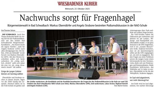 Bürgermeisterwahl in Bad Schwalbach: Nachwuchs sorgt für Fragenhagel Geschrieben am 29. Oktober 2025. Zum vollständigen Artikel Zurück Weiter