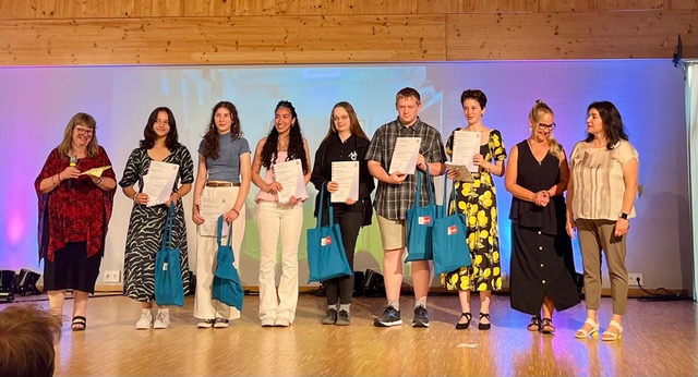 Mit großer Vorfreude fanden sich unsere Sieger Krystal Joy Färber und Viyan Cerci gemeinsam mit Frau Gemmer und Frau Schwarz zur 25. Landespreisverleihung in den Alten Sprachen Latein und Griechisch am 18. Juni 2025 im Alten Kurfürstlichen Gymnasium in Bensheim ein. Froh verfolgten wir, beginnend mit den Grußworten von Herrn Staatsminister Armin Schwarz und Andreas Weschke, die Preisverleihung im Solo- und Gruppenwettbewerb mit Auszügen der preisgekrönten Beiträge und musikalischer Rahmendarbietung der Schüler des ansässigen Gymnasiums. Dieser Frohsinn mündete in große Dankbarkeit und Stolz von uns allen, uns Schülerinnen und Schülern, unseren begleitenden Lehrerinnen und nicht zu vergessen unserer Schule und deren Leitung selbst, die uns nicht zuletzt diese Möglichkeit bietet, an solch schönen Veranstaltungen teilzunehmen und großartige Siege davonzutragen!
