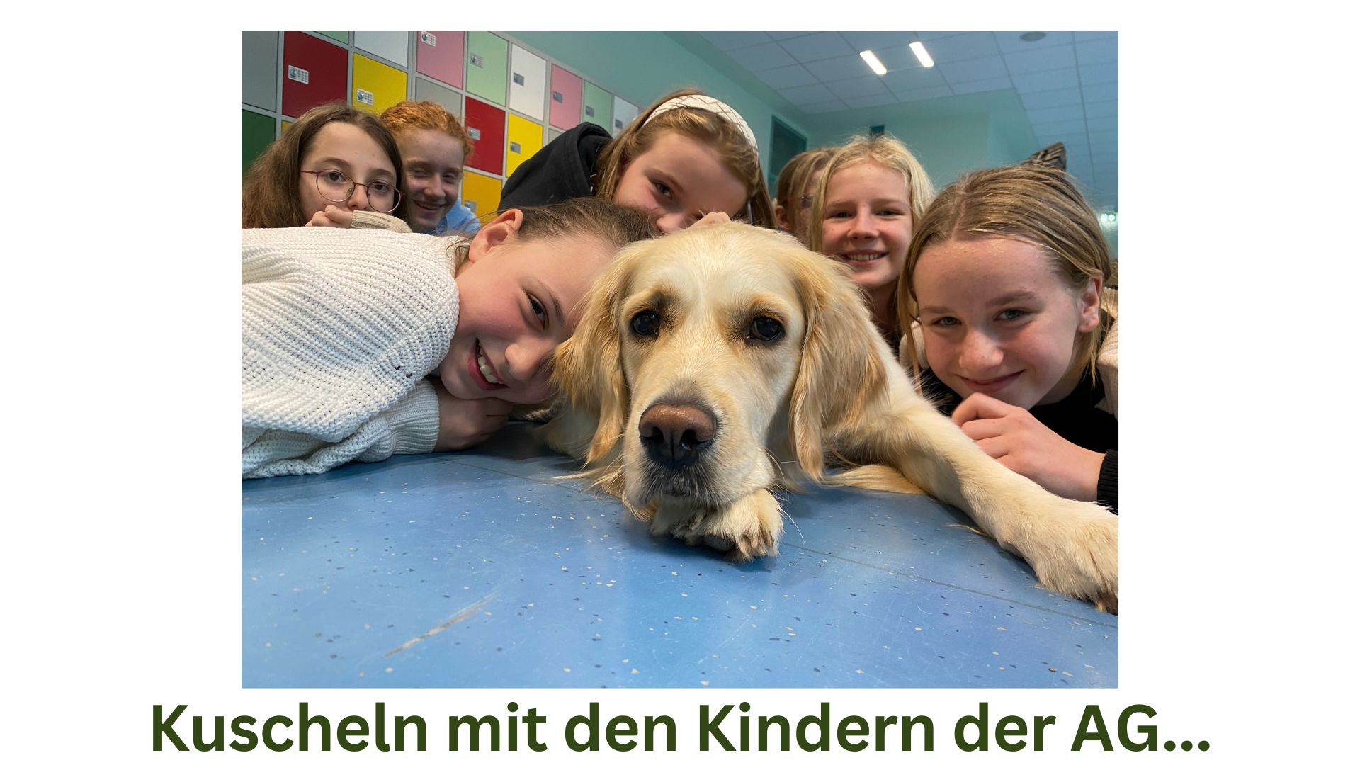 Herzlich Willkommen auf der Homepage unserer Schule! Wir möchten Ihnen heute ein ganz besonderes Mitglied unserer Schulgemeinschaft vorstellen: Emma, unsere bezaubernde Golden Retriever-Hündin.